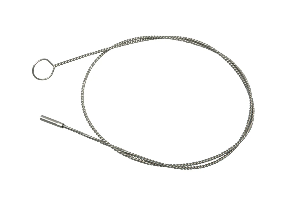Cable flexible de 1500 mm fabricado en acero inoxidable trenzado, con conexión rosca M6. Es utilizado para limpieza profunda de tuberías cuando se conecta a cepillos específicos. Su resistencia y flexibilidad lo hacen ideal para trayectos rectos o curvos.