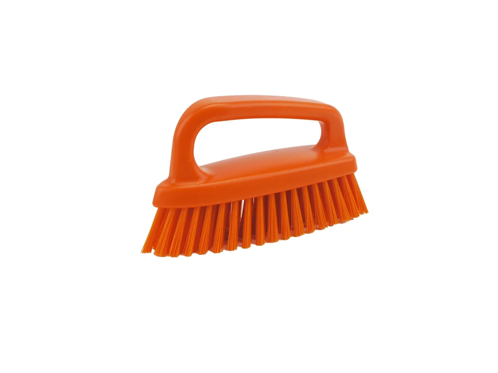 Cepillo con empuñadura para uso manual, diseñado para limpieza de superficies duras. Mango de polipropileno con diseño ergonómico permite limpieza efectiva y controlada, evitando el contacto directo de la mano con los filamentos. Uso recomendado hasta 80 °C. Esterilizable a 134 °C.