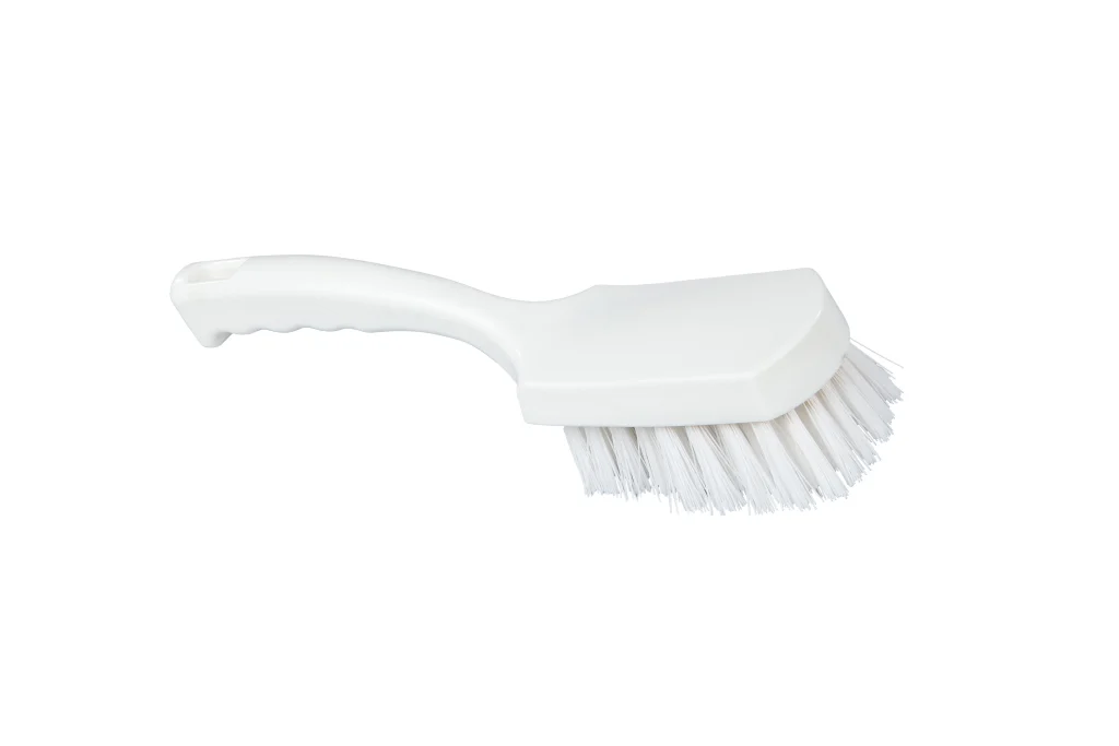 Cepillo panadero Resin Set con cerdas de rigidez media PBT 0.50 mm, de 275 x 70 mm, mango corto de polipropileno, recomendado para limpieza intensiva en equipamiento y superficies, enfocado en esquinas.