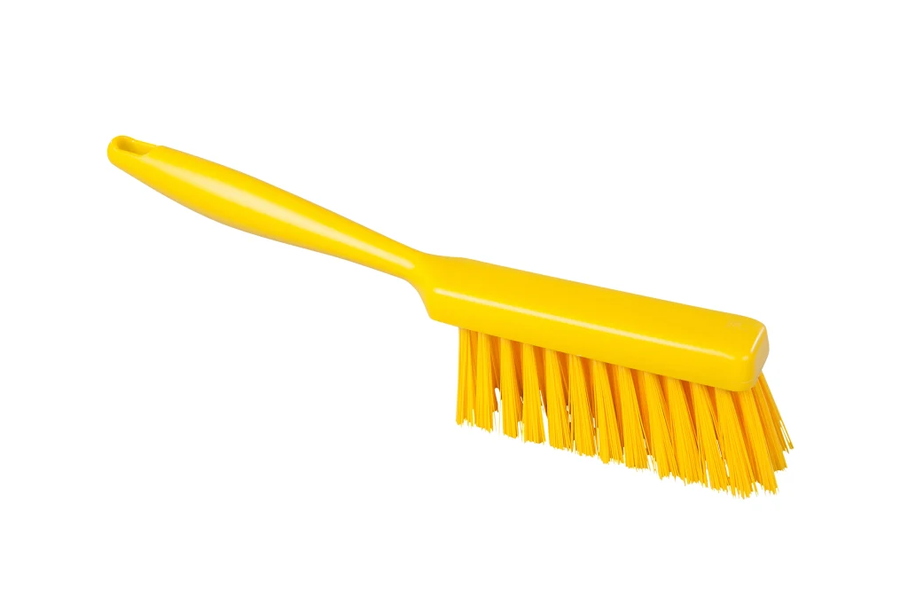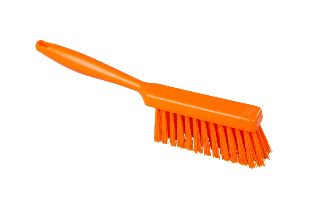 Filamentos de dureza media en poliéster PBT 0.30 mm, aptos para tareas habituales de limpieza de polvo, harina y residuos en áreas de panadería. Su mango largo permite un manejo cómodo y controlado para mantener superficies limpias con eficiencia.