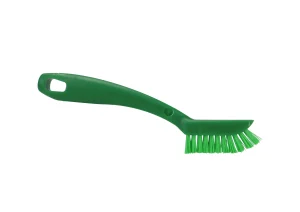 Cepillo de mano para limpieza de maquinaria, con cerdas duras de PBT 0.50 y mango de polipropileno. Tamaño compacto, rigidez y maniobrabilidad especializada en la limpieza de residuos difíciles en todo tipo de espacios técnicos sin comprometer durabilidad. Uso recomendado hasta 80 °C. Esterilizable a 134 °C.