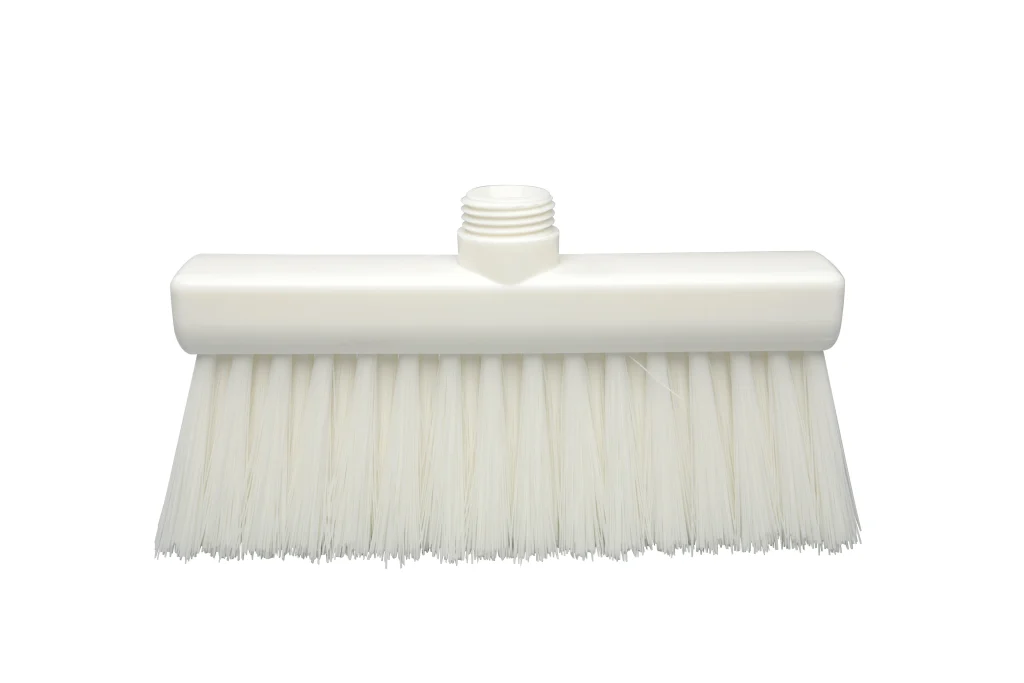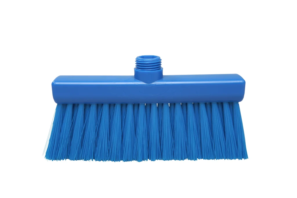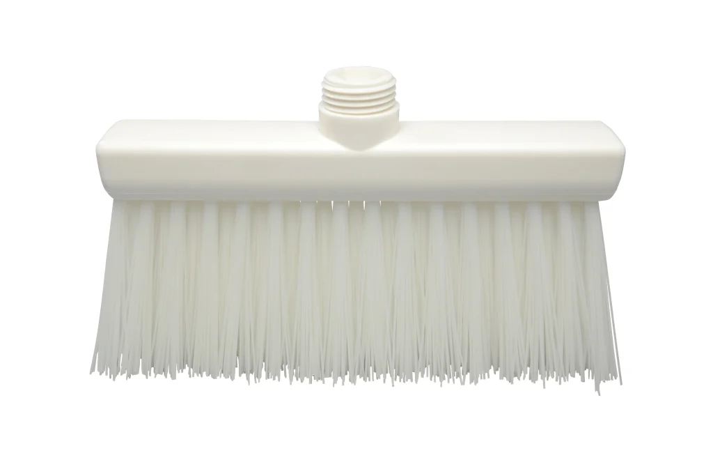 Escobas angostas fabricadas en polipropileno, con filamentos de PBT de alta resistencia. Diseñadas para limpieza de pisos en seco en conjunto con recogedores. Su formato delgado permite mayor precisión en zonas estrechas o delimitadas. Resistencia térmica de hasta 80 °C en uso y 134 °C para esterilización. Compatibles con mangos de rosca externa.