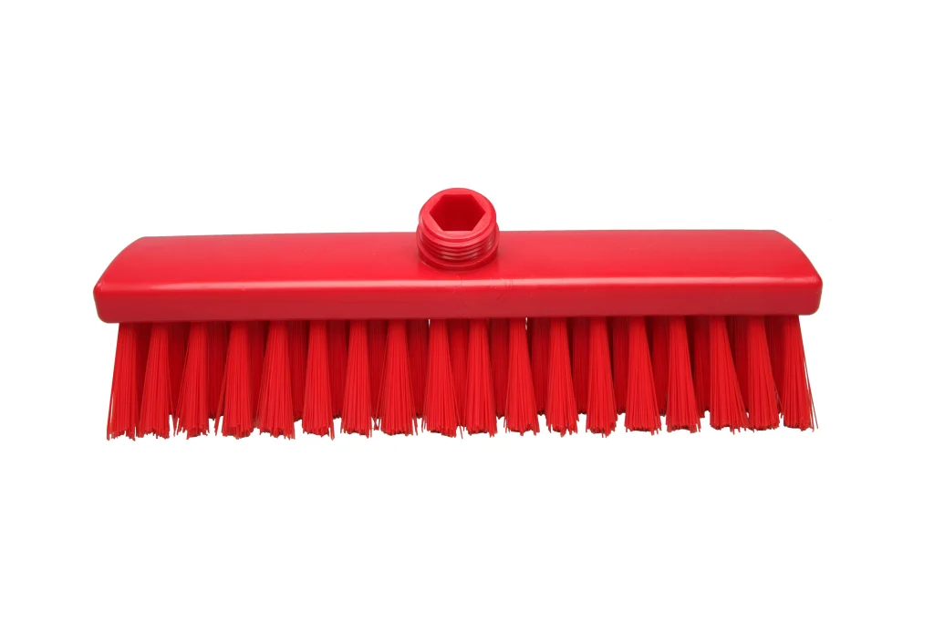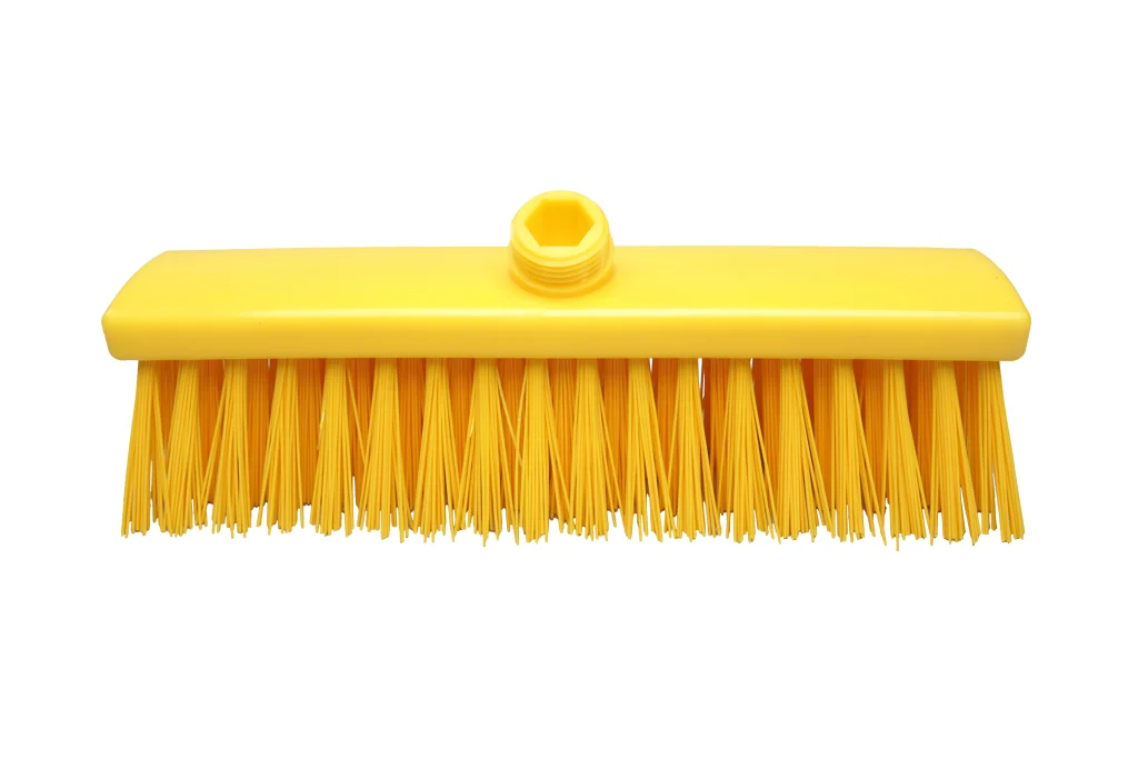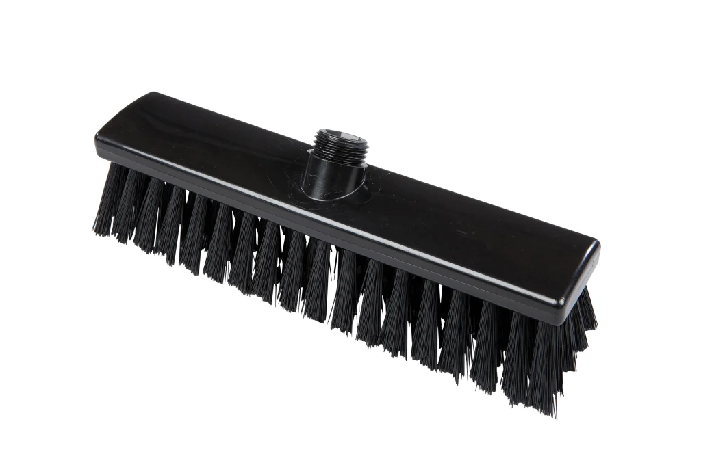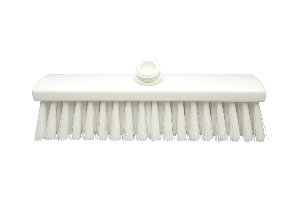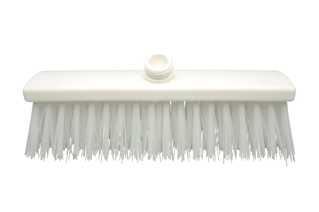 Las escobas rígidas con filamentos extralargos de la línea Clásica cuentan con cuerpo de plástico resistente y cerdas de poliéster PBT de 1,00 mm de diámetro y 110 mm de largo, que garantizan una alta dureza para limpiezas exigentes. Soportan temperaturas de uso hasta 80°C y máximas de 134°C. Equipadas con rosca externa compatible con accesorios FBK (rosca no incluida), están diseñadas para limpieza seca y húmeda de suelos, especialmente en exteriores o para trabajos de limpieza dura, ofreciendo durabilidad y rendimiento superior.