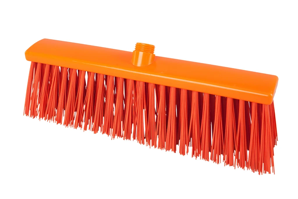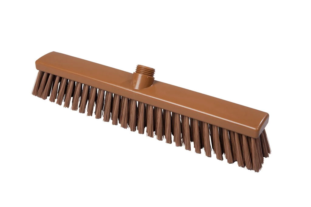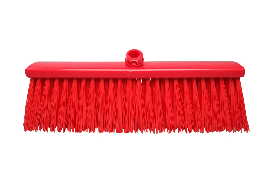 Escoba de tamaño medio con filamentos extralargos y duros, diseñada para un equilibrio entre alcance y maniobrabilidad en espacios exteriores o áreas con suciedad difícil.