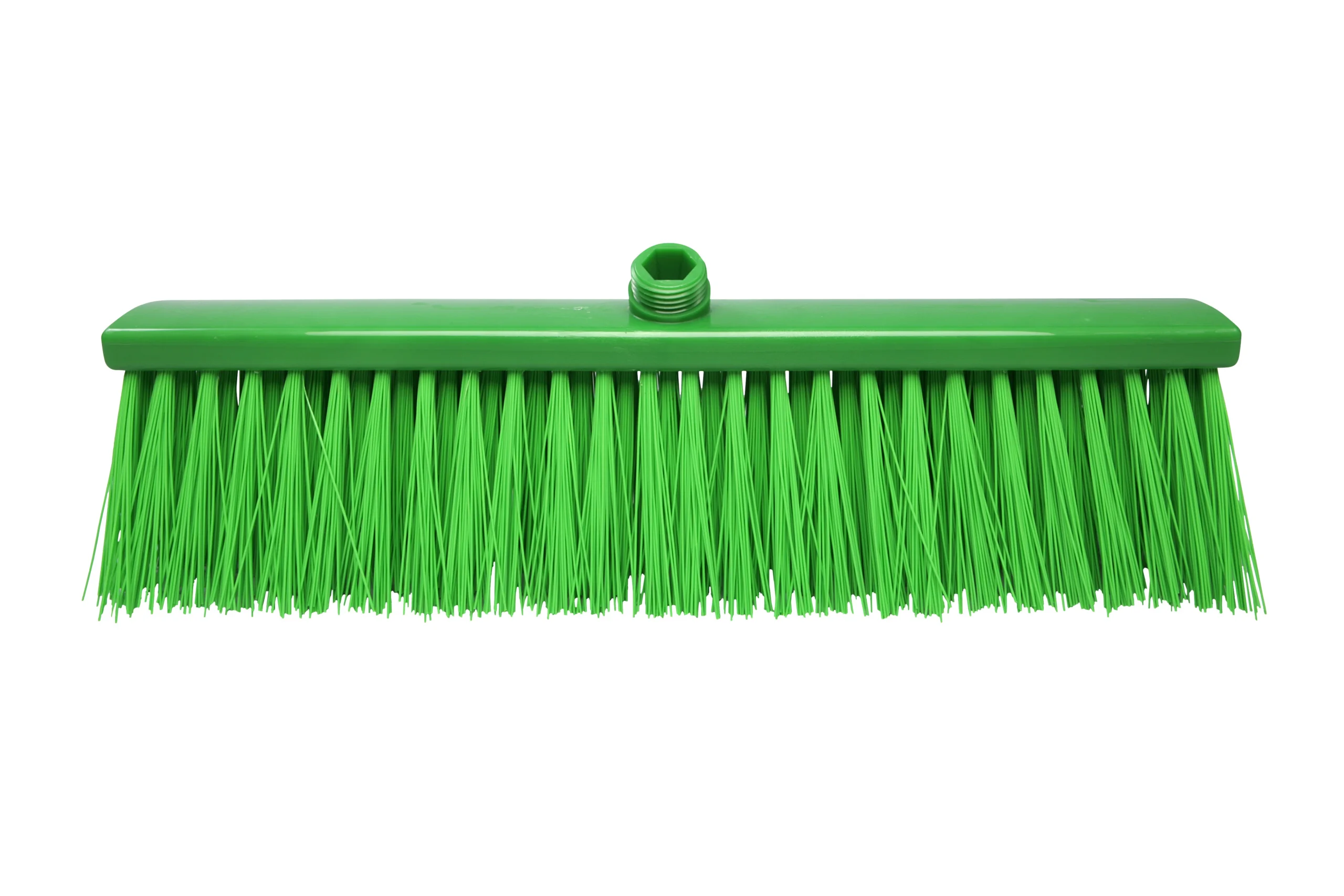 Las escobas rígidas con filamentos extralargos de la línea Clásica cuentan con cuerpo de plástico resistente y cerdas de poliéster PBT de 1,00 mm de diámetro y 110 mm de largo, que garantizan una alta dureza para limpiezas exigentes. Soportan temperaturas de uso hasta 80°C y máximas de 134°C. Equipadas con rosca externa compatible con accesorios FBK (rosca no incluida), están diseñadas para limpieza seca y húmeda de suelos, especialmente en exteriores o para trabajos de limpieza dura, ofreciendo durabilidad y rendimiento superior.