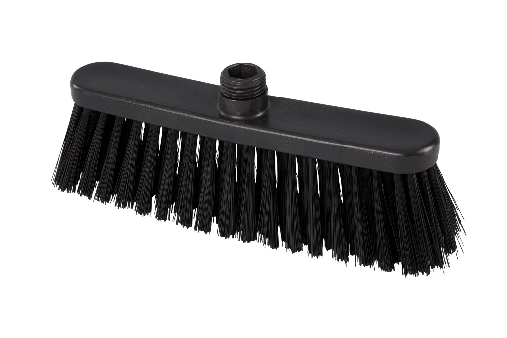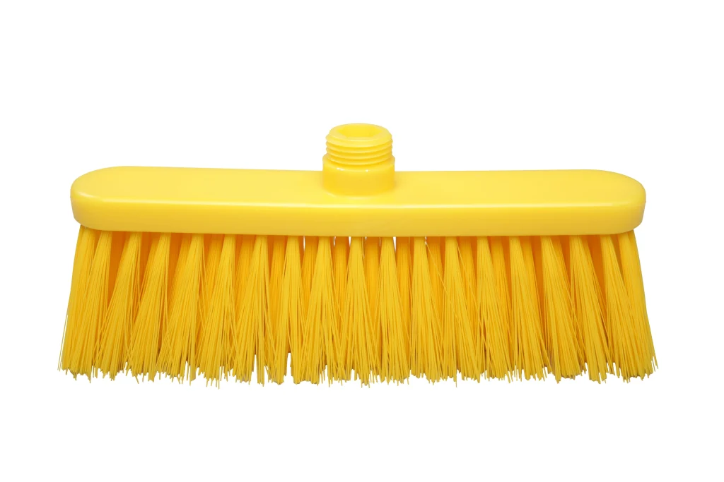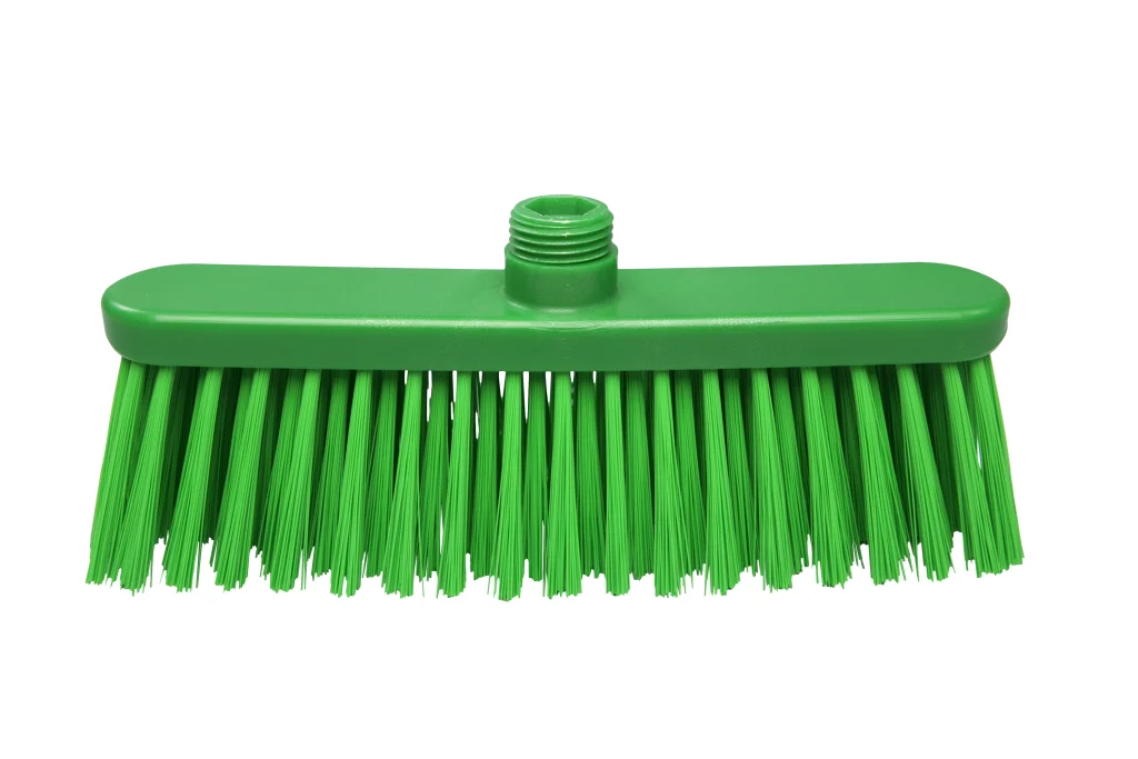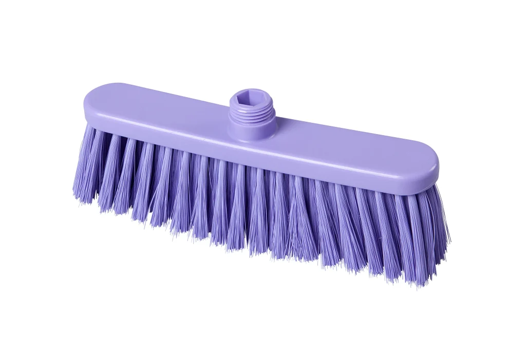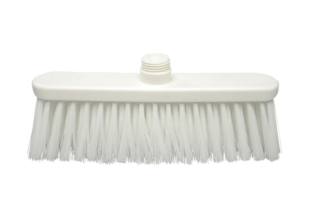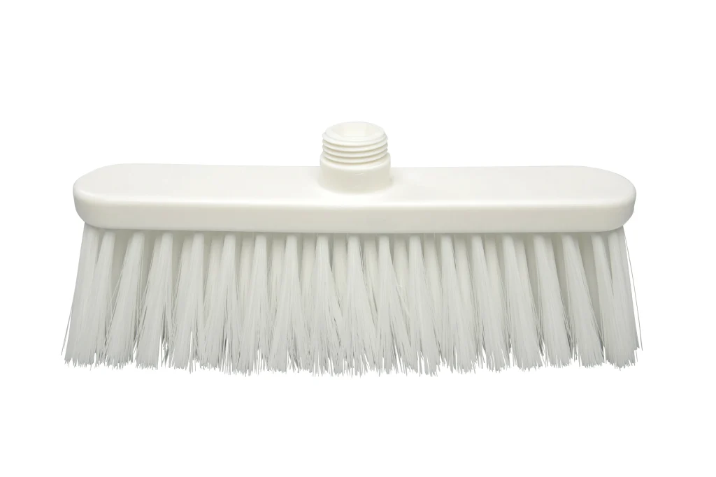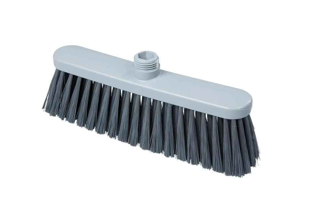 Escobas rectas de 70 mm de altura, fabricadas en polipropileno con filamentos de PBT resistentes a la deformación. Disponibles en versiones suaves o medias para distintos niveles de exigencia. Diseñadas para limpieza en seco de pisos. Soportan hasta 80 °C en uso y 134 °C en procesos de esterilización. Compatibles con mangos de rosca externa.