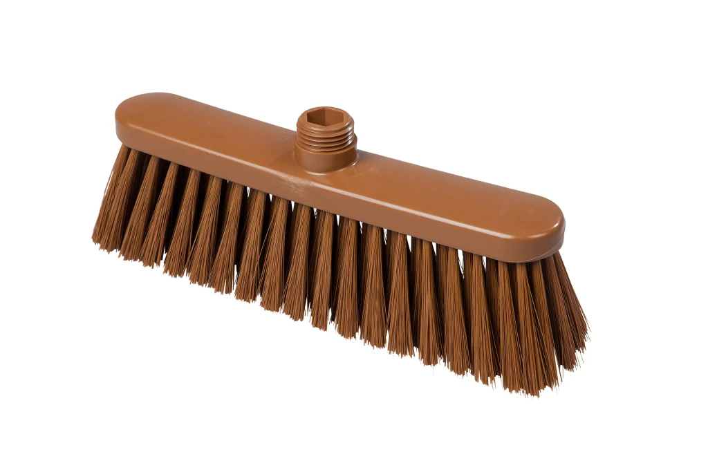 Escoba recta de 280 x 48 mm con cerdas suaves de PBT 0.30 mm. Recomendada para suelos delicados o para remover residuos muy livianos.
