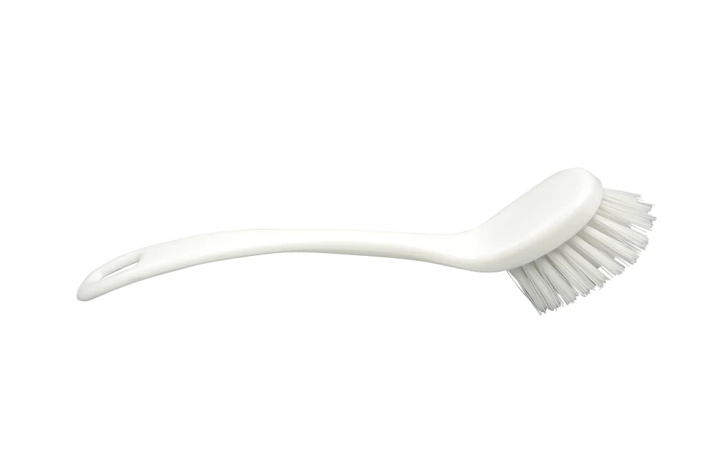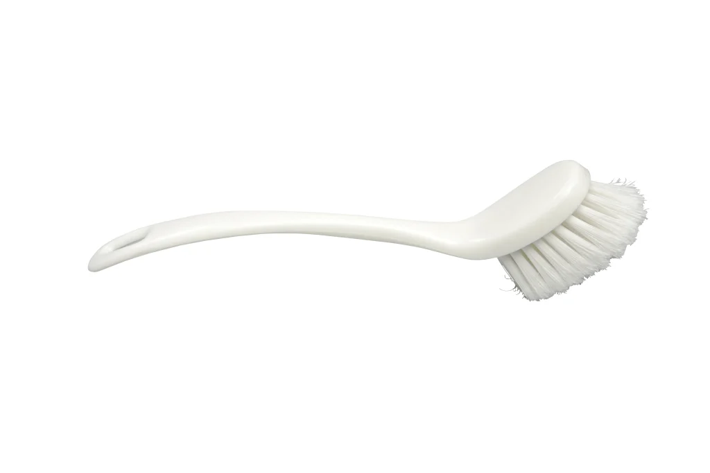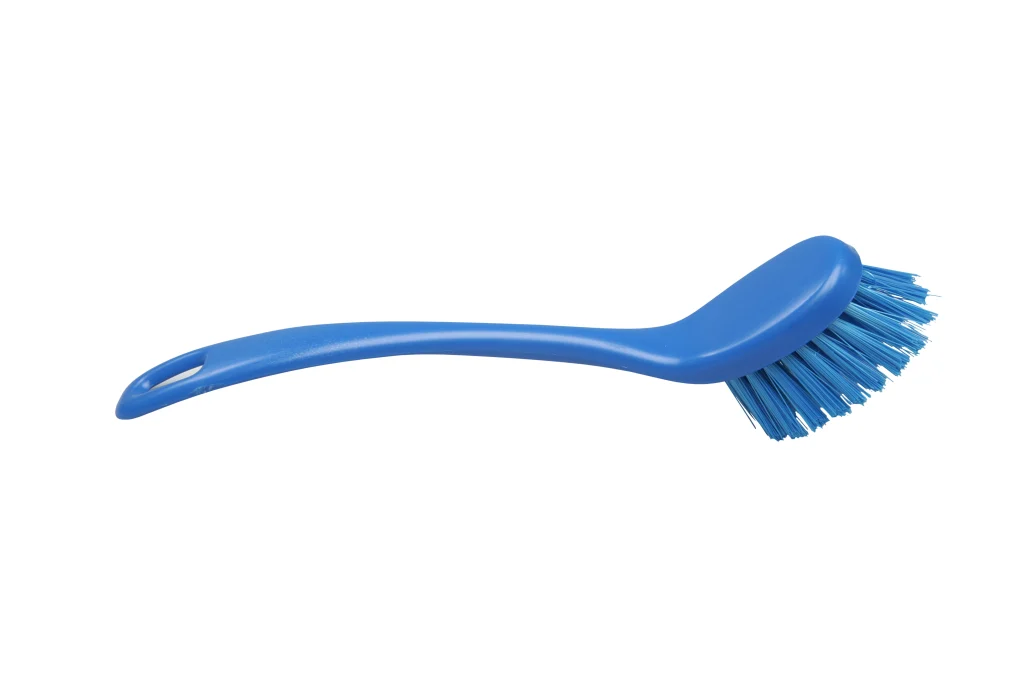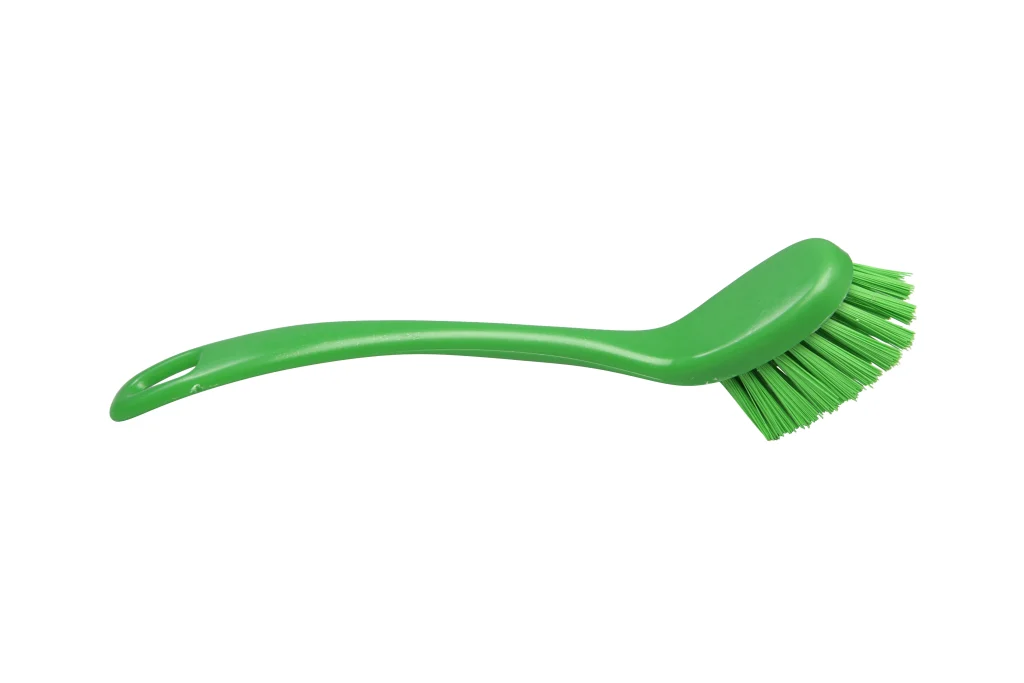 Cepillo de mano con filamentos de dureza media que equilibran eficacia y cuidado. Su tamaño compacto y mango corto permiten una limpieza precisa y cómoda de platos y utensilios, facilitando la remoción de residuos en cocinas y restaurantes con alto estándar de higiene.