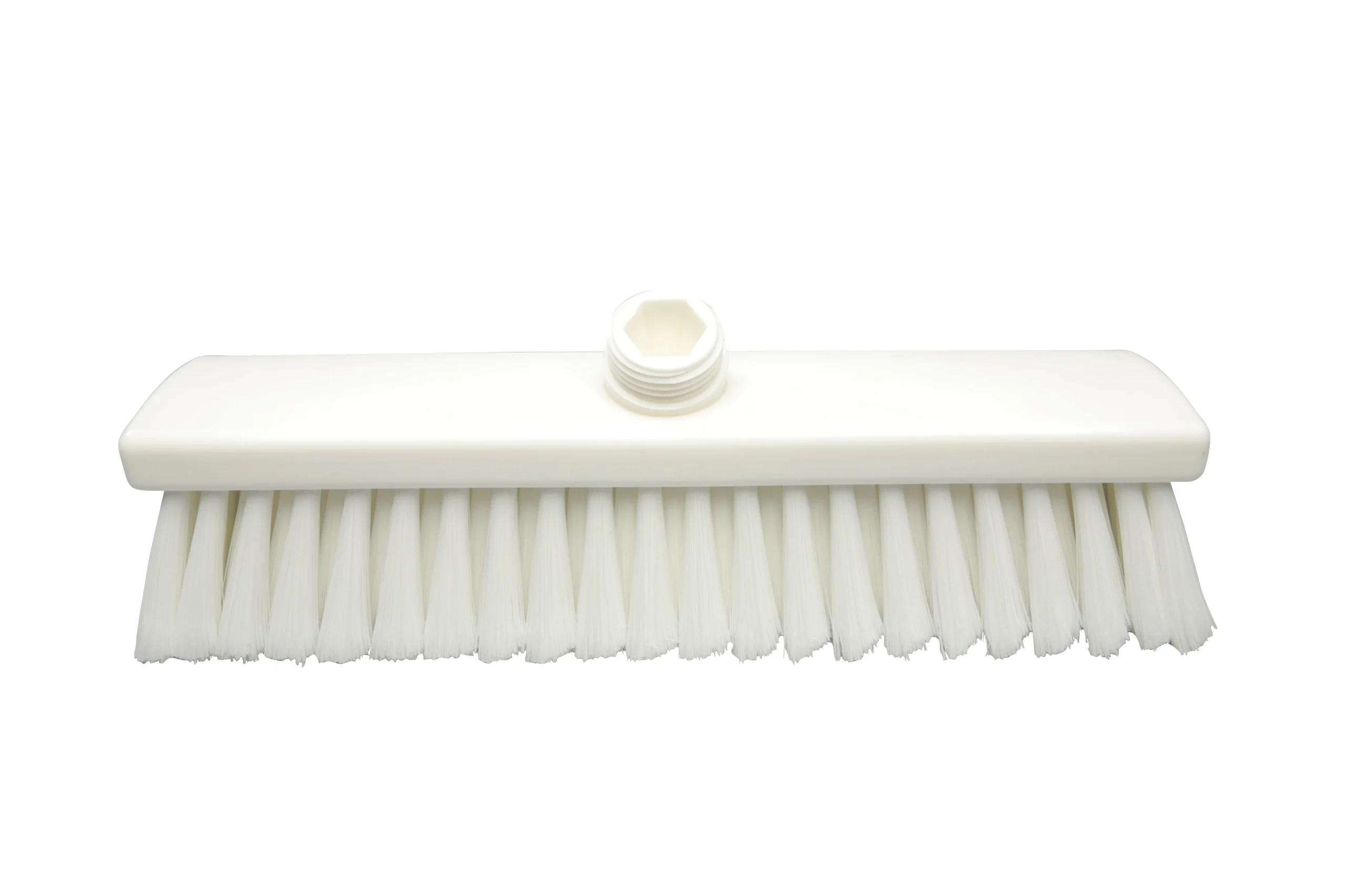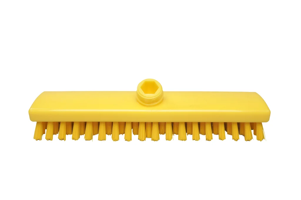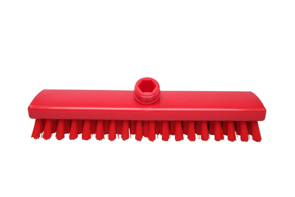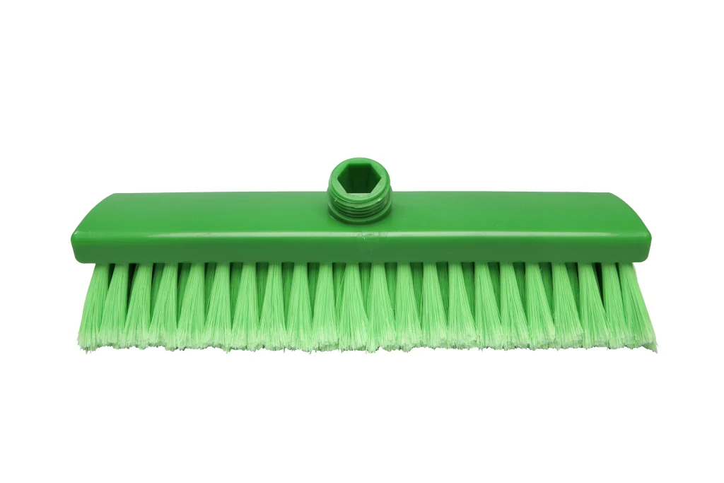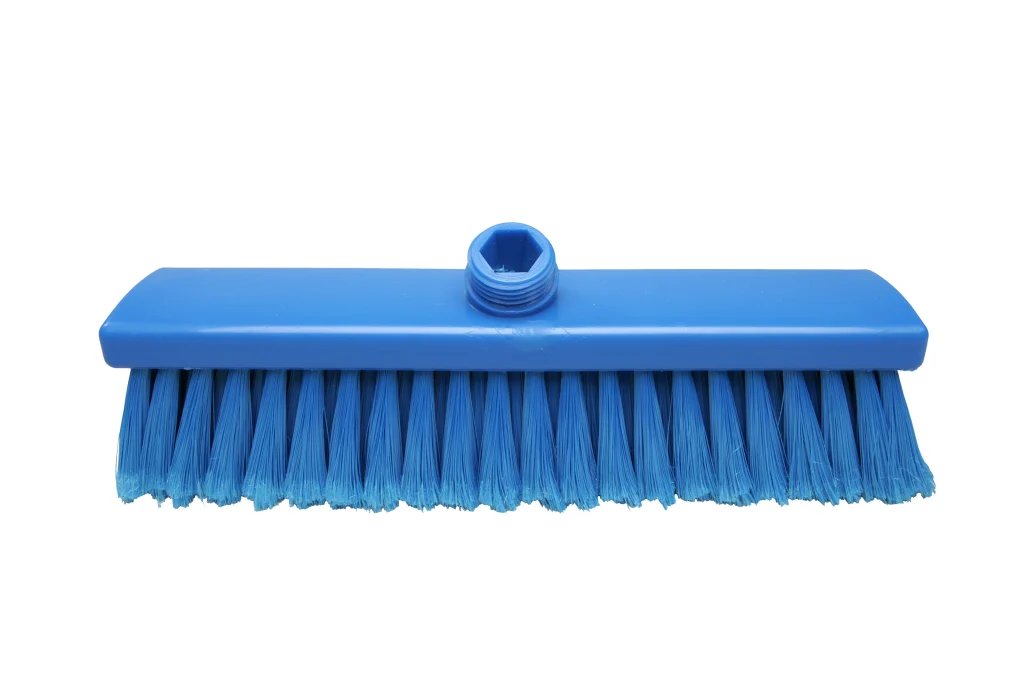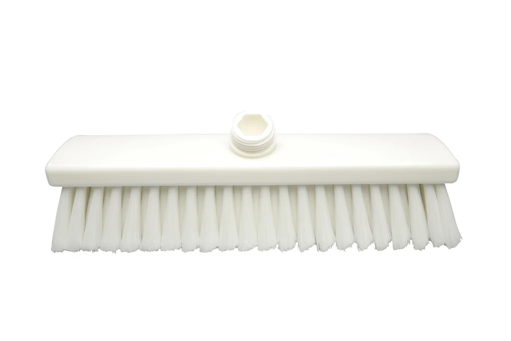 Cepillos buque fabricados en polipropileno con filamentos de PBT 0.50 mm de alta rigidez, ideales para trabajos más pesados en suelos, muros y maquinaria. Soportan hasta 80 °C en uso y 134 °C para esterilización. Conexión a mangos de rosca externa con paso de agua.