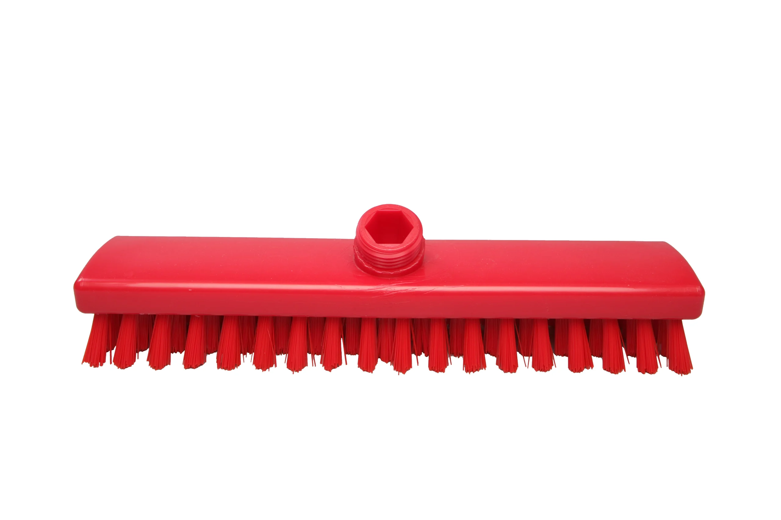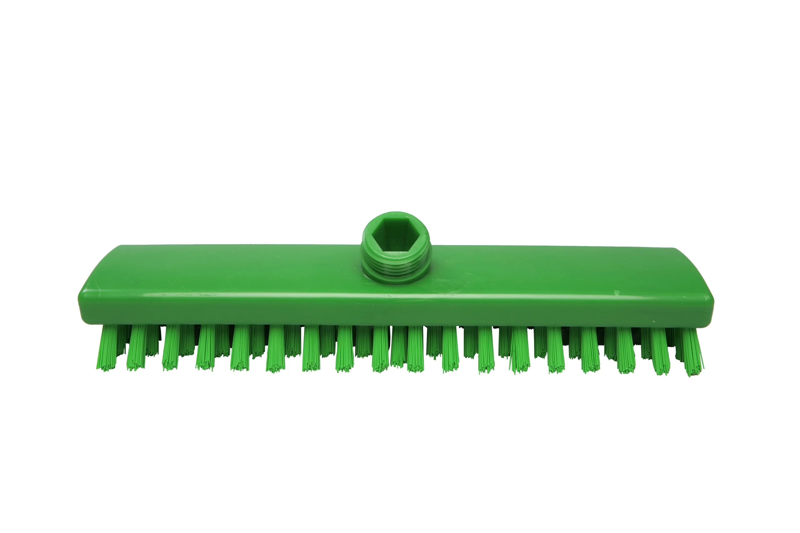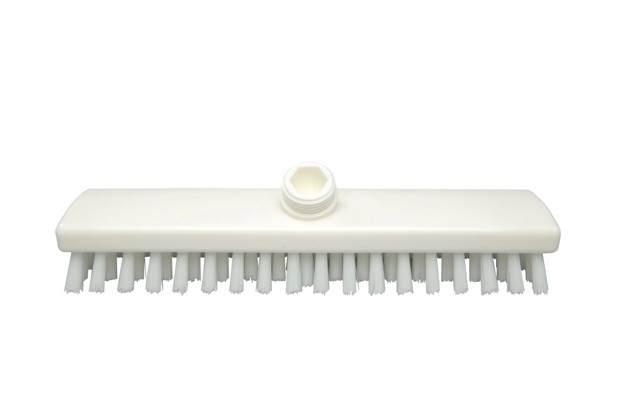 Cepillos buque fabricados en polipropileno con filamentos de PBT 0.50 mm de alta rigidez, ideales para trabajos más pesados en suelos, muros y maquinaria. Soportan hasta 80 °C en uso y 134 °C para esterilización. Conexión a mangos de rosca externa con paso de agua.