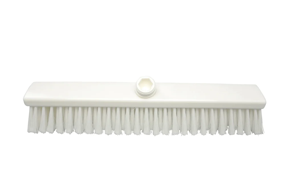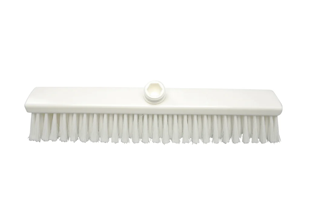 Cepillos de buque con cerdas duras de poliéster PBT, de alta resistencia y poca deformación, ideales para fregado intensivo en suelos y muros. El bloque está fabricado en polipropileno robusto que asegura durabilidad y manejo cómodo. Todo el cepillo cuenta con certificación PHB, garantizando seguridad y calidad para aplicaciones industriales exigentes. Compatible con mangos sin paso de agua.