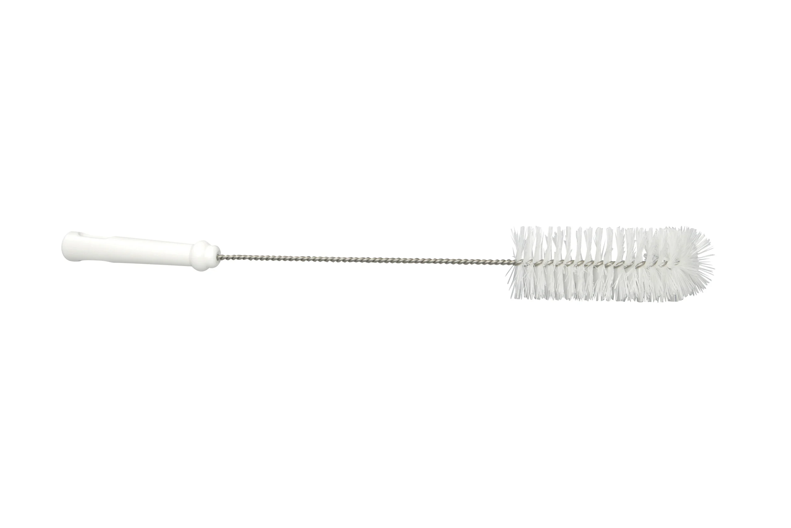 Cepillo de mano con mango largo y filamentos medios de poliéster PBT (0.30 mm), con dimensiones de 65 x 160 x 500 mm. Facilita la limpieza eficiente de tubos más grandes, asegurando un manejo cómodo y resultados efectivos.