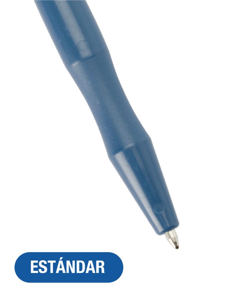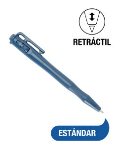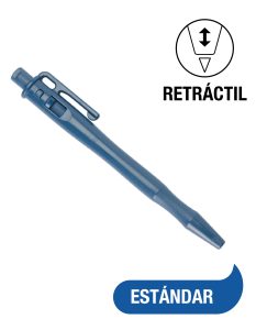 Lápiz retráctil detectable con tinta presurizada azul. Funciona de forma consistente sobre superficies con humedad, grasa o polvo. Cuerpo moldeado en plástico detectable, clip fuerte, diseño ergonómico y cartucho de alta presión. Apto para zonas exigentes.