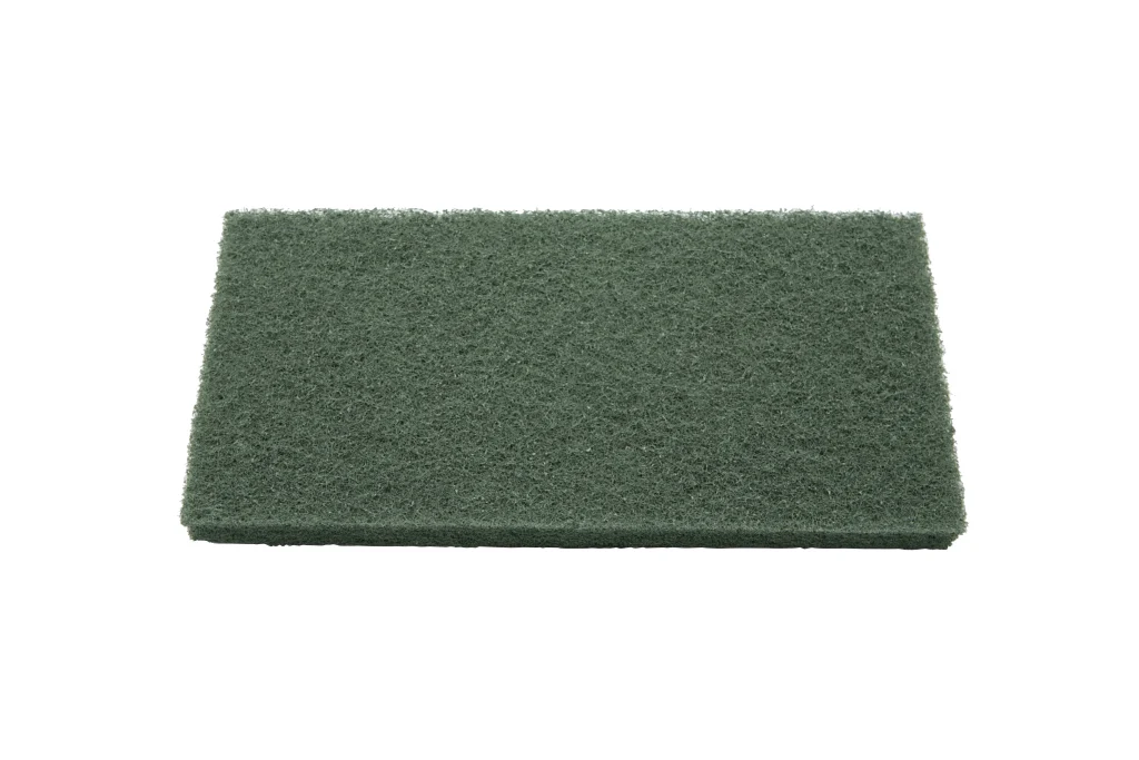 Pad abrasivo de 250 x 120 mm fabricado con fibras sintéticas flexibles como nylon y poliéster, diseñado para eliminar marcas y residuos en pisos, muros y otras superficies. Disponible en cinco niveles de abrasividad, fácilmente identificables por su color: muy suave (blanco), suave (rosado), medio (azul), duro (verde) y muy duro (negro). Soporta temperaturas de hasta 100 °C. (Compatible con 47101 y 57101).